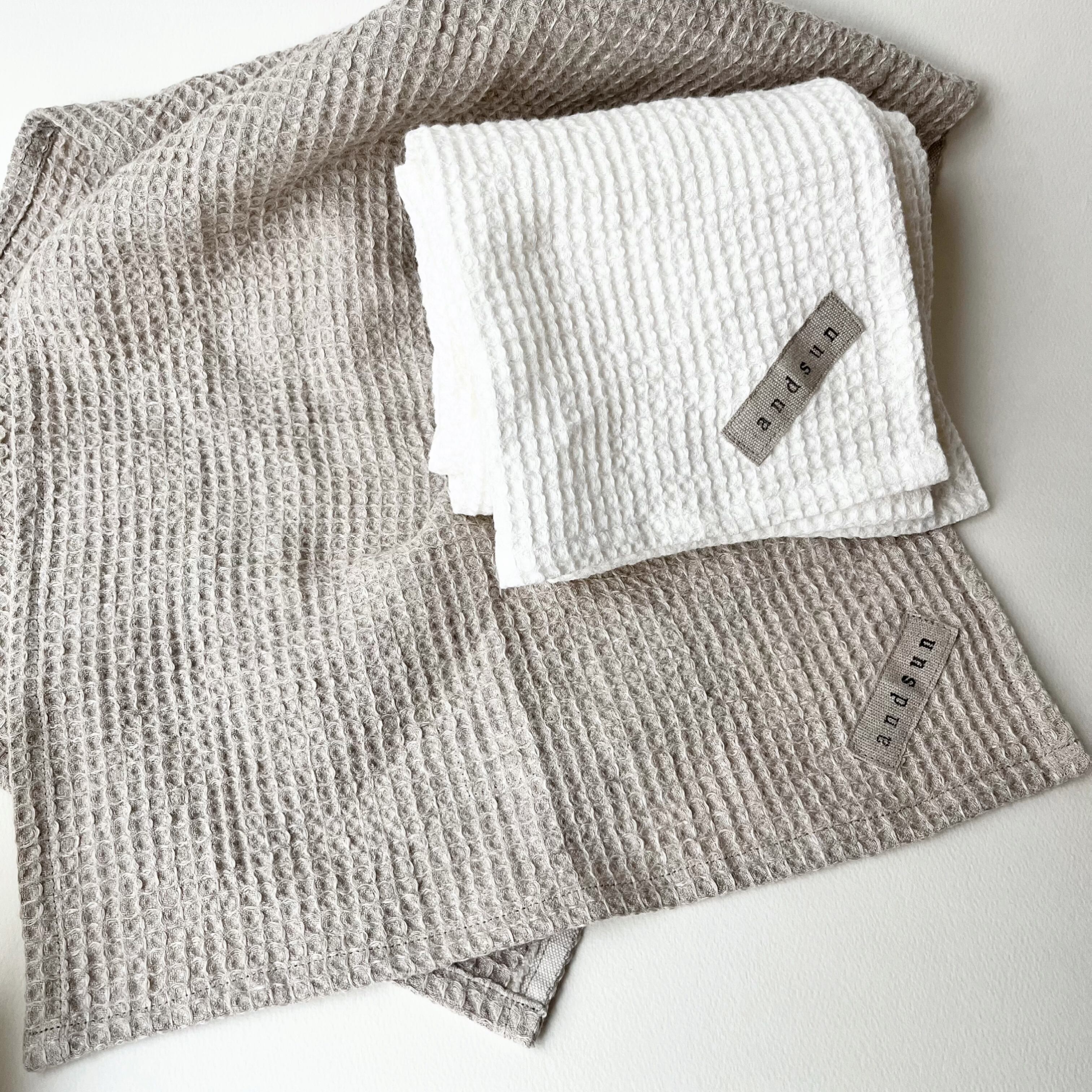 このフェイスタオルは、リネン100%のワッフル生地で作られており、高い吸水性と速乾性を兼ね備えています。しっかりとした生地感ながらも軽やかで、毎日の使用にぴったり。ホワイトと生成りの2色からお選びいただけます。