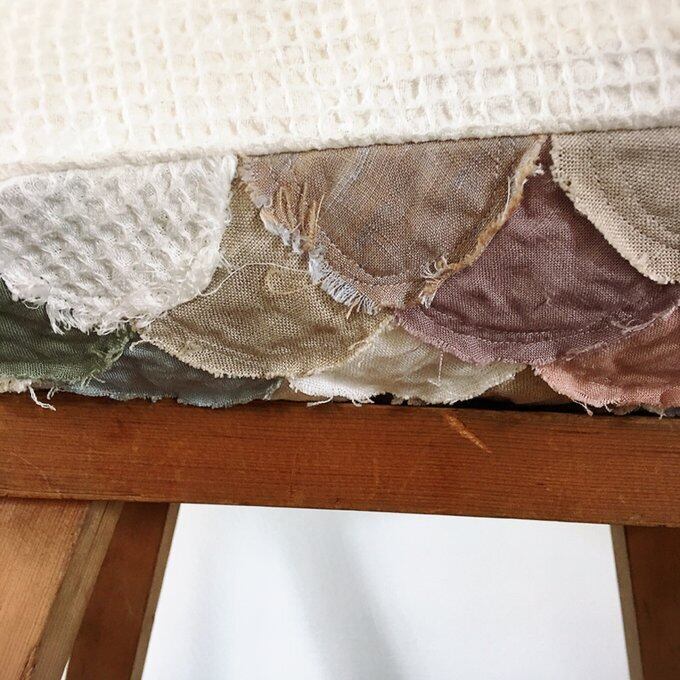ウロコ部分は切りっぱなしになっていて使っていくうちに少しずつ布端が変化していくのを楽しむのが特徴のクッションカバーです