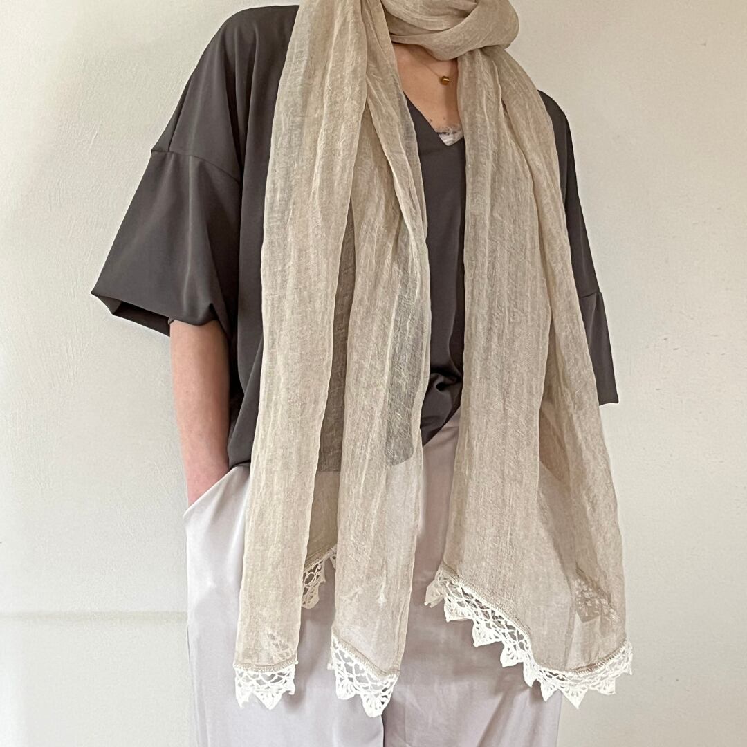 とても軽いリネン100%のシングルガーゼでストールを作りました