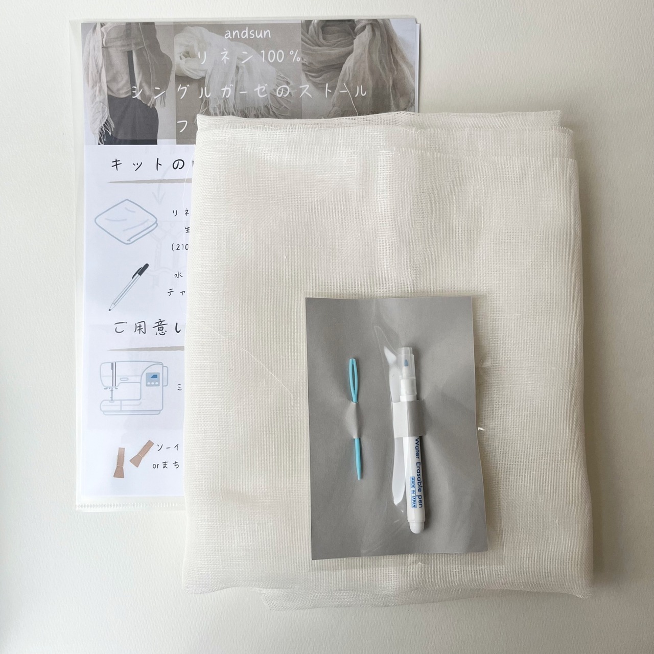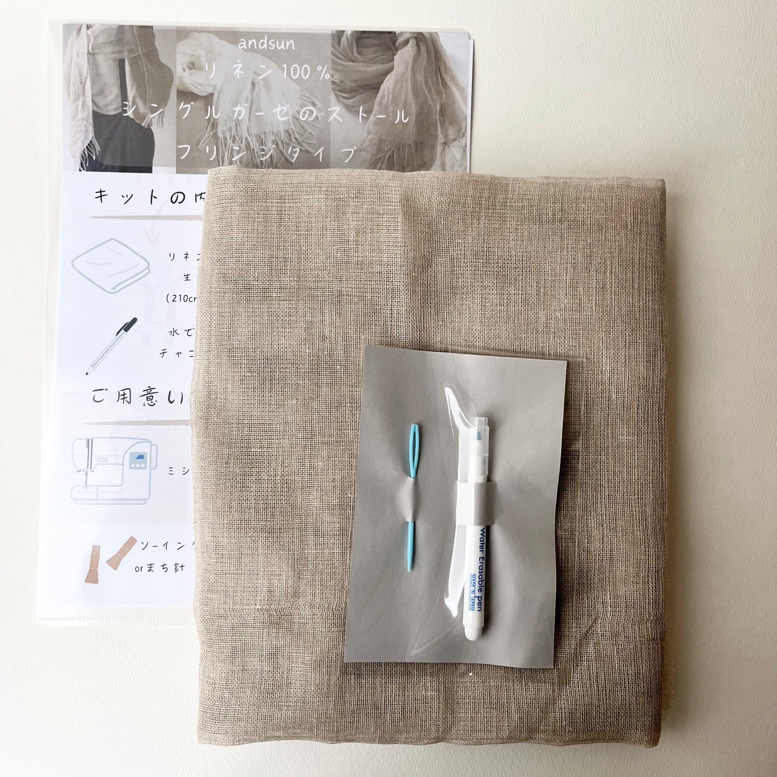andsunの「シングルガーゼのストール*フリンジ」が作れる制作キットです